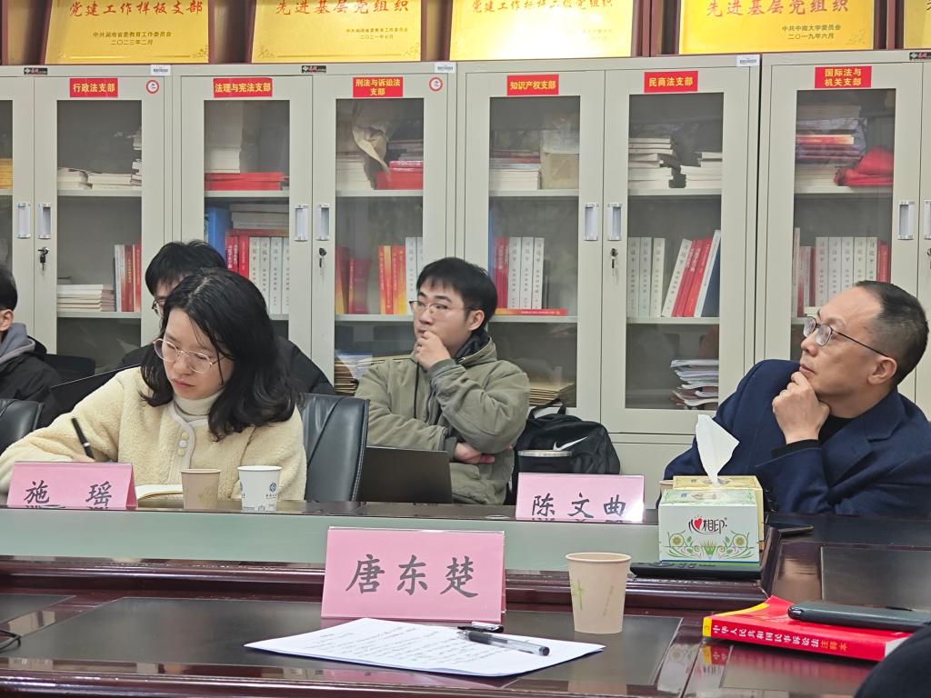 2025年11月17日下午15时,广州大学法学院教授、中国法学会民事诉讼法学研究会副会长陈刚莅临我院,以“实质诉讼法的复兴”为主题在法学院207会议室开展学术讲座。本场讲座由中南大学法学院唐东楚教授主持,陈文曲教授担任与谈人,法学院师生共同参与。