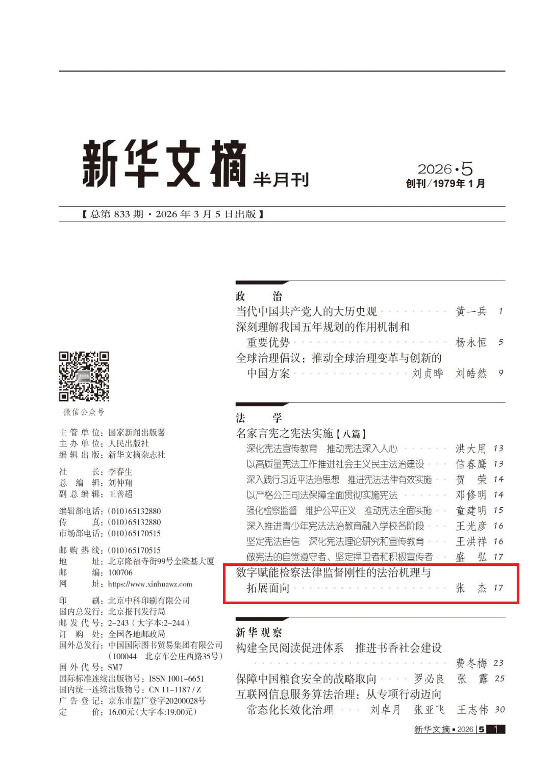 《新华文摘》2026年第5期
