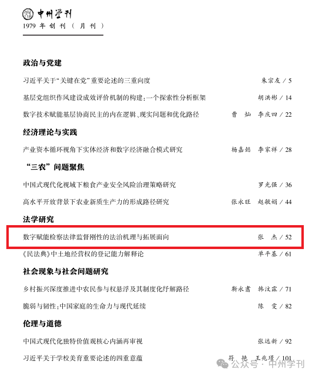 近日,中南大学数字法治研究院院长、博士生导师张杰教授的论文《数字赋能检察法律监督刚性的法治机理与拓展面向》,获《新华文摘》2026年第5期全文转载。