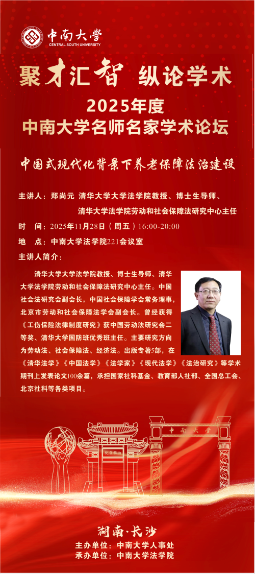 【讲座预告】郑尚元:中国式现代化背景下养老保障法治建设