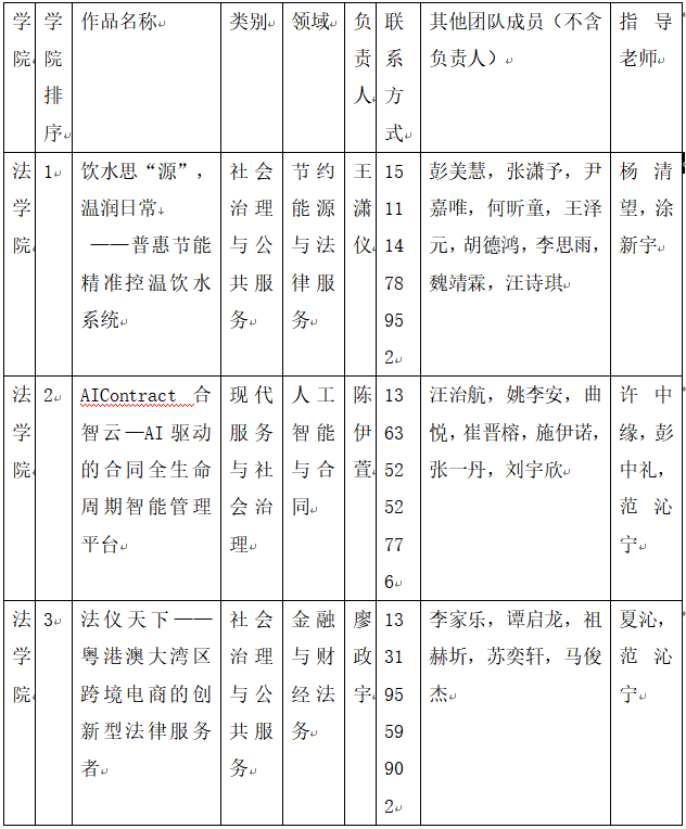 按照《关于组织开展中南大学第二十届"升华杯"大学生创业计划竞赛的通知》和校团委相关工作相关要求,法学院分团委组织开展了"升华杯"院级评审选拔工作。经团队申报,专家评议,报研究院党委审批,现将拟报送校级评审作品名单公示如下: