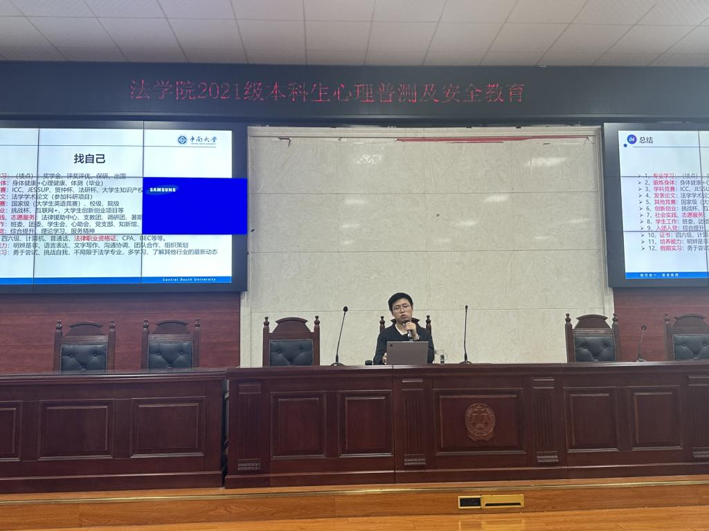 2025年10月15日下午,法学院23级大三学年第一次年级大会于文法楼221正式召开,23级辅导员彭梓熙主持本次年级大会,23级全体同学到场参会。