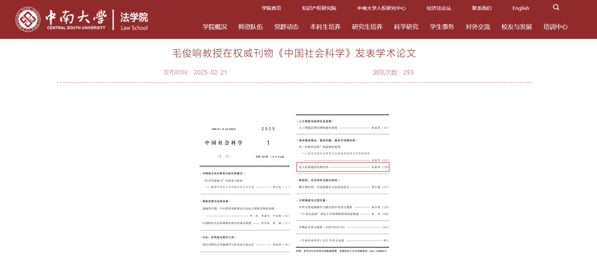 社会的爱,彰显在“为生民立命”的自觉担当,是将法学知识经世致用、以专业能力回馈时代的深厚情怀。这份爱,是将专业智慧转化为公共产品,用法治微光温暖社会一隅。正如李亚鹏先生所创办的嫣然天使儿童医院面对困境时,万千普通人的十元、百元捐款汇聚成两千多万元的奇迹,诠释了“涓滴之爱,可成江海”。我院师生亦以专业方式践行着一份又一份大爱。法学院科研进校经费1140万元(纵向827万元,横向313万元),创历史新高。中南大学数据法治研究院、纪检监察研究院落户法学院,助力相关人才的培养。2025年,学院形成近20项资政成果,其中1项获中央领导肯定性批示;举办第九届“法治中国·湘江论坛”、第三届中德日韩刑事法学论坛、海峡两岸法学交流促进会2025年学术年会暨两岸关系法治学术研讨会、第三届欧中青年法律人论坛暨“欧中法学研究的新领域和新发展”学术研讨会;发布《中国法治实施报告(2025)》(总第12卷)。